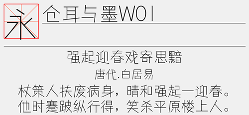仓耳与墨w01字体是是一款免费且具有个性的中文字体,该字体最大的特征是笔画交叉处的内侧添加了圆角,不同状态的连续弧线,彼此相融,风格朦胧柔美,让人感觉轻松休闲,具有很好的视觉感。配套使用的英文和标点部分也同步沿用了与中文相同的设计特点,在混排时风格统一,不会突兀。可以很好的应用于文本装潢、信息展示、网页设计、篆刻制模、数据制作、装潢设计、计算艺术设计、视觉设计、字帖等一切合法应用场景,有喜欢的朋友可免费下载收藏。