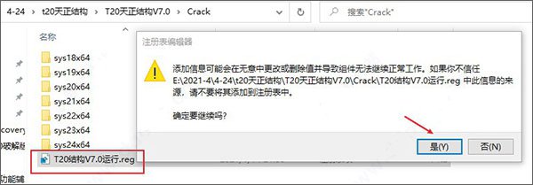 8、然后再运行文件夹中的T20结构V7.0运行.reg注册表,以此点击是-确定;