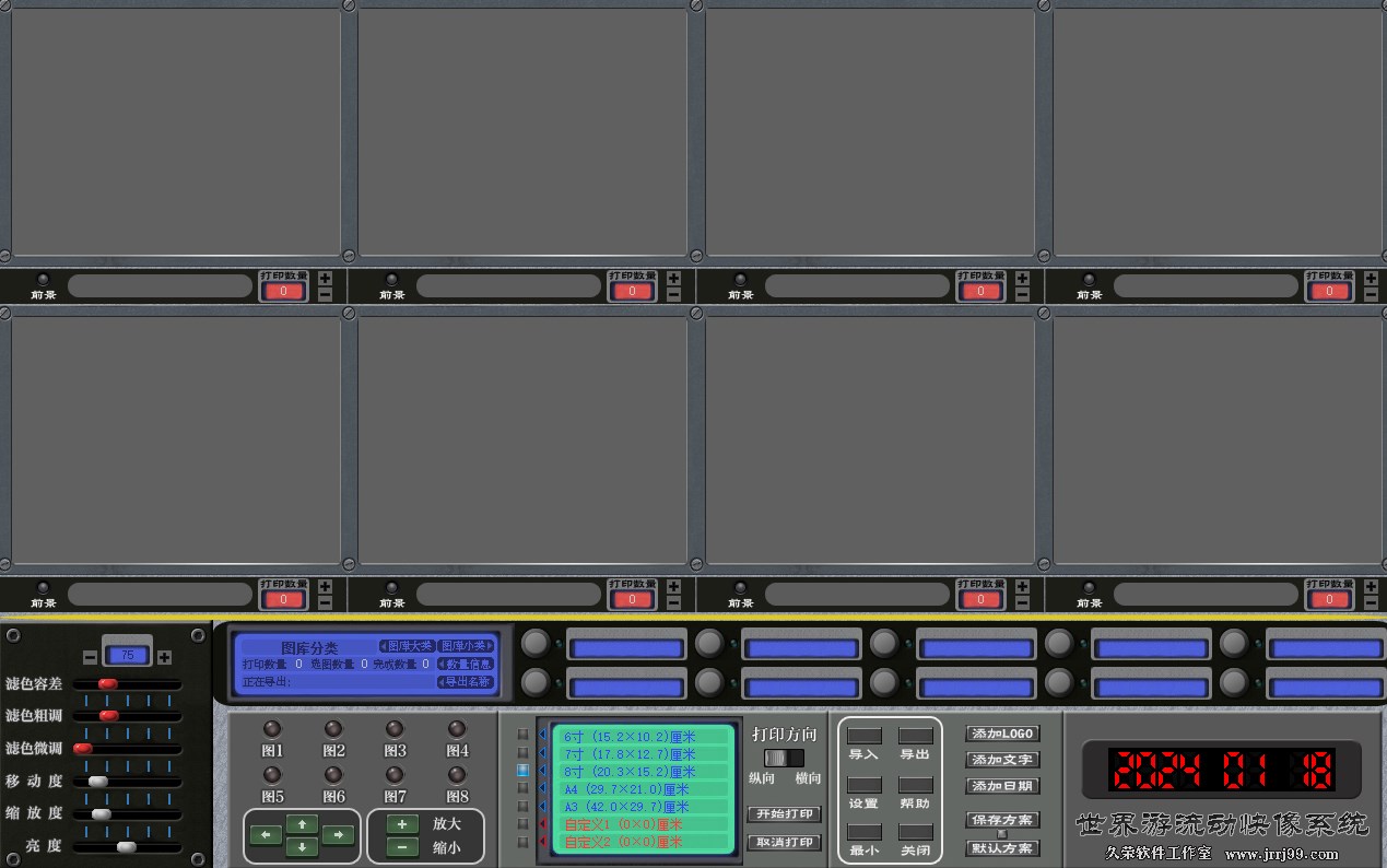 一、1次可同时处理8张图片,效果一目了然大大提高了效率节省了时间(通过10个按键切换图库分类)。