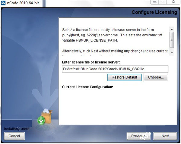 10、在许可证界面浏览指定HBMUK_SSQ.lic(文件在Crack文件目录下)许可证文件,然后点击next