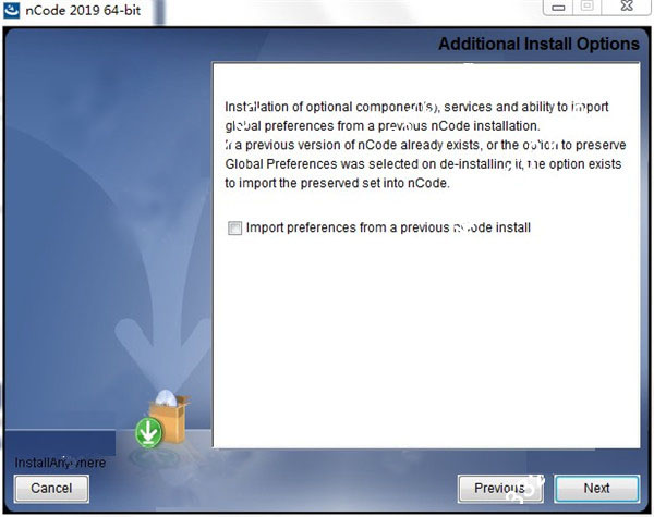 11、安装可选组件,服务以及从先前的nCode安装导入全局首选项的功能。