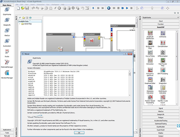 VibeSys提供了丰富的数据处理分析和可视化功能,通过专业的模块选项在结构振动、乘客舒适性及旋转机械等领域完成声学与振动分析。VibeSys提供了一个以进程为导向的图形化工作环境,用户只需拖放相关的分析模块即可创建分析工作流程。这种简便的操作方式让用户能洞悉数据处理过程中任一阶段的内容。