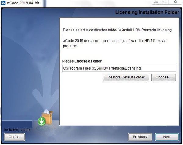 9、请选择目标文件夹以安装HBM Prenscia许可。nCode 2019使用HBM Prenscia产品的通用许可软件