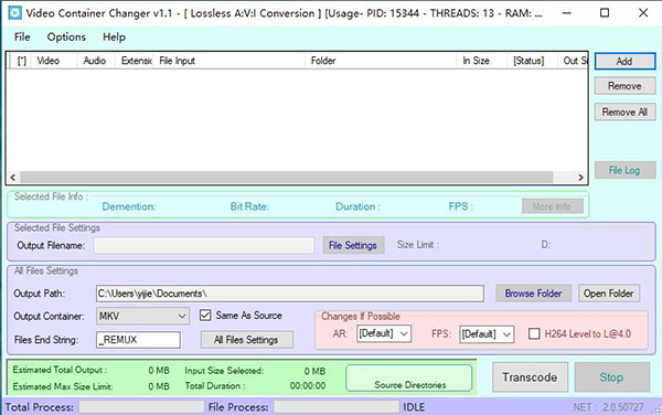 1、Video Container Changer提供视频格式转换功能2、可以批量转换当前的视频为新的格式