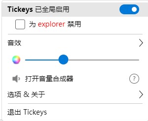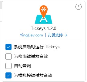 1、Tickeys官方版能够为键盘附加音效。 2、软件为用户提供了自定义音效功能。 3、软件支持电脑开机时自动启动。 4、软件为用户提供了一键设置音效包功能。设置面板: