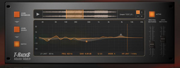 T-RackS 5 Master Match模块是一种新型插件,自动匹配歌曲的声音,使用了3种不同的音源轨道作为参考。