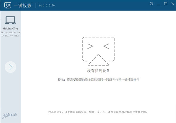 1、打开一键投影使,在局域网内连接同一个Wifi