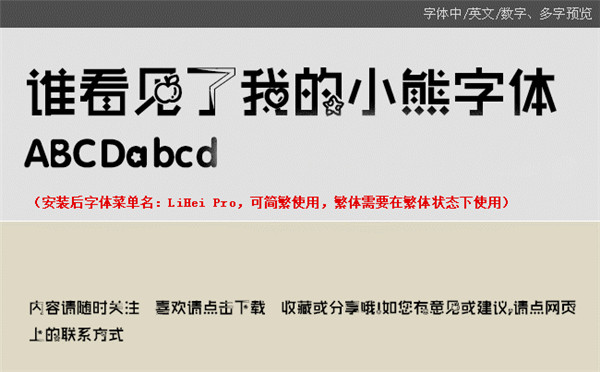 华邦小熊体字体是一款全新打造的艺术创造字体,该字体的最大特色就是非常的有个性唯美,欢迎有感兴趣的前来下载该华邦小熊体字体收藏!