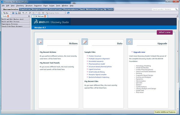 Discovery Studio 2021是的一款能够在个人电脑上进行全新的环境,该软件拥有的功能十分强大,支持模型构型、模型分析、科学应用、脚本编写、图像分析、药理基团、蛋白质建模、RL互动、序列分析、排序、模拟以及X射线等多种的功能。是最好的生命科学领域的软件,众多的像是实验生物学家、结构生物学家、计算生物学家等专业的生物方面的研究人员都十分的推崇这款软件,特别是专门为这方面科学家提供医用的蛋白质模拟、优化和药物设计工具等等。除此之外,软件还允许无缝地结合在现代研究中使用的各种方法来解决不同的计算问题,软件本身包括几个不同的,但紧密集成的功能层。用户可以通过高质量的图形、多年专业验证的技术以及集成的环境,从而为用户提供实验数据保存、管理与专业水准的建模,这样就可以提高我们用户在建模上的效率。通过数据建立分子模型,甚至还可以分析多种实验以及物体的结构,完全是支持生成模型输出到打印机上;然后在生物分析方面,也是支持将不同的基因序列放到软件上进行计算的,并且还可以以对比不同序列的变化,从而从而知道蛋白质、DNA的实验结果。