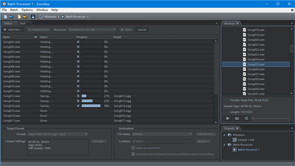1、批量处理多个音频文件