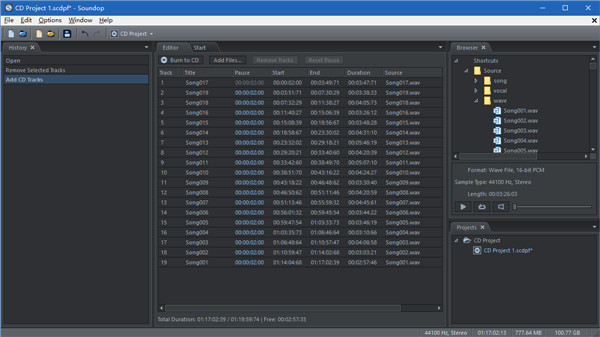 1、音频数据可以使用低延迟的ASIO驱动程序录制2、可以在单个应用程序中清晰无缝地处理音频文件编辑与多轨混音