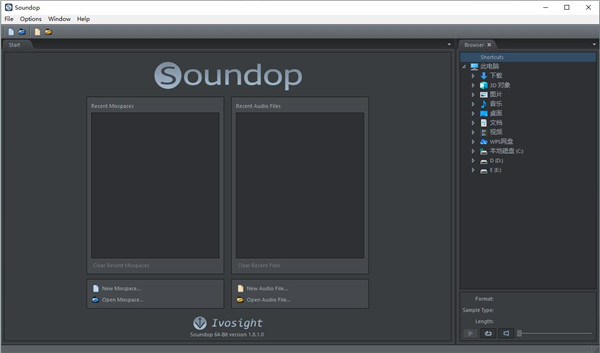 5、在开始面板中列出所有最近的音频文件和项目,然后单击以打开它们