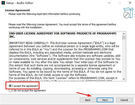 2、双击“Audio-Editor_Setup.exe”文件运行,先默认English语言,勾线同意协议