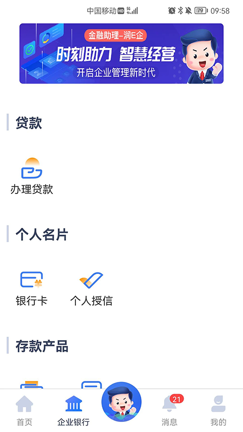 1、千心一体,一体千面 根据渠道特色,企业主、企业主管可通过APP享受不同的金融服务,打造专属客户的金融助理。 2、产品丰富度 数据全景图,老板好助理。企业主可通过APP可观名下所有资产,一机多企,全景可视,一目了然。 3、移动审批 便捷:不需要随身携带Ukey。手指一戳,移动授权秒到账。 高效:批量授权,一键提交。手指一戳,审批无忧。 移动审批500万元,新客户减免300元开户费。润E企app怎么添加银行卡