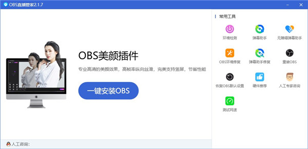 obs直播管家软件是一款专为主播们而开发的网络直播管理工具。OBS管家能够为主播们提供一键安装OBS、直播上传专业测速器、实用的常备工具、插件安装、环境管理、测速器、OBS恢复设置、人工交流、直播码获取、录制文件夹打开以及OBS一键安装和技术答疑服务等功能。让主播们不再为获取直播码而烦恼,一键安装轻松解决,是主播必备工具。主播们直播辅助神器,比心动了吗,有需要的朋友赶紧体验一下吧。
