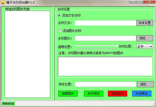 橘子水印添加器官方版是一款非常好用的水印添加工具。在当今这个信息大爆炸的时代,信息的版权可谓是越来越重要了,例如图片信息,用户想要保护自己的版权,水印是个不错的选择,但是大多数人都不太会ps这类的技能,我们总不至于为了打个水印,去学习ps这项技能吧,可谓是费时又费力,因此小编为大家带来的这款水印添加软件,该款软件使用起来非常的方便,完全不需要你会修图技能,只需要简单几步就可完成一张图片的水印添加工作,如果你想打出个性化的水印,ps将会是个更好的选择,本站就有,需要的朋友可自取哟,不过这款软件日常使用是足够了。对这款软件感兴趣的朋友,一定不要错过,欢迎大家免费下载体验。