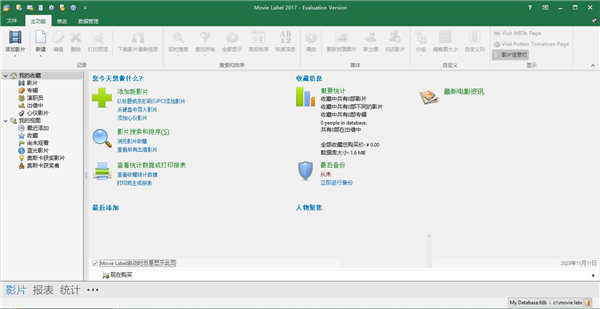 Movie Label中文版是一款专业并且功能强大的电影收藏管理工具软件。Movie Label 2017采用经典的Ribbon界面,能够帮助大家DVD、Blue-ray、VHS、LD以及硬盘上的影片管理的有条不紊,此外Movie Label还可以从互联网上搜索下载大家所收藏的影片的各种信息,便于大家的识别,由于是从IMDB或Amazon上下载大家所收藏电影的相关数据,因此欧美影片数据比较丰富,国产和日韩电影数据相对较少,但可以很方便的自己手动编辑,最新版本的Movie Label 2017 新增支持电影租借管理、报表统计、演员管理等功能,并且可以添加更多电影封面、可以直接进入IMDB页面。