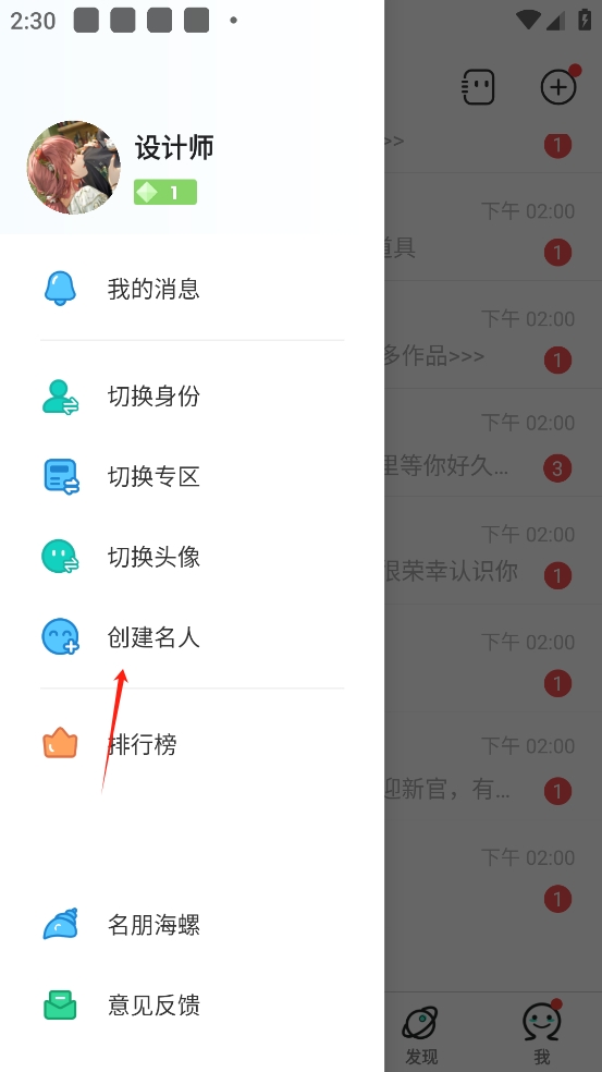 1、打开名人朋友圈APP,左滑菜单点创建名人。