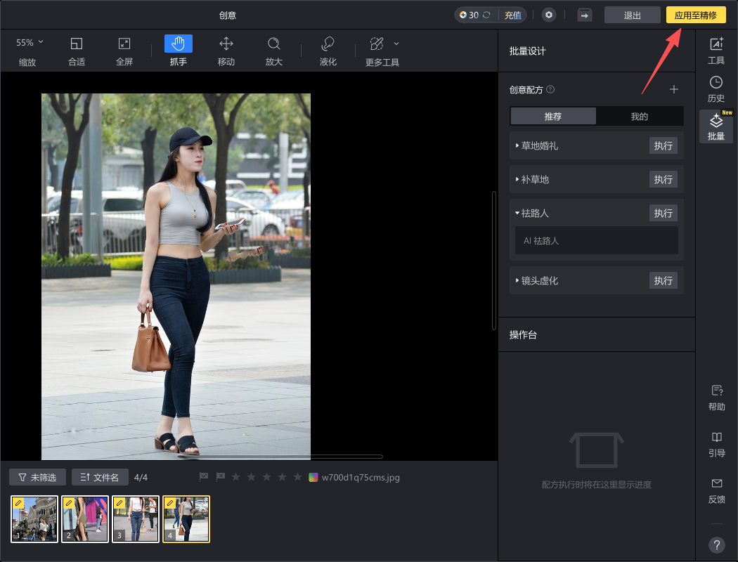 1、中性灰磨皮 真正达到商业级中性灰磨皮效果,通过构建高清网络重塑皮肤光影,消除黑眼圈、法令纹、肤色暗沉等复杂问题,在完整保留皮肤纹理细节的前提下,修复肌肤局部瑕疵使肌肤恢复平整均匀,柔嫩自然的质感。 2、一键液化 骨骼点精细化美型,通过3D骨骼点定位技术,结合用户体态姿态,自动匹配美型方案,细化调整区域,在保持用户形体自然的情况下,实现微整形级别的瘦脸瘦身等美型功能 3、一键背景修复 通过全景分割网络解析图像内容,识别环境特定区域,并对该区域出现的瑕疵进行精准定位。结合瑕疵周边色彩与纹理,对瑕疵进行消除或填补,以呈现整洁自然的背景环境 4、实时自定义批量处理 支持自定义预设效果,并一键应用到全部图片。也可以选择我们专门为摄影师和设计师内置的推荐预设像素蛋糕官方电脑版怎么去掉路人
