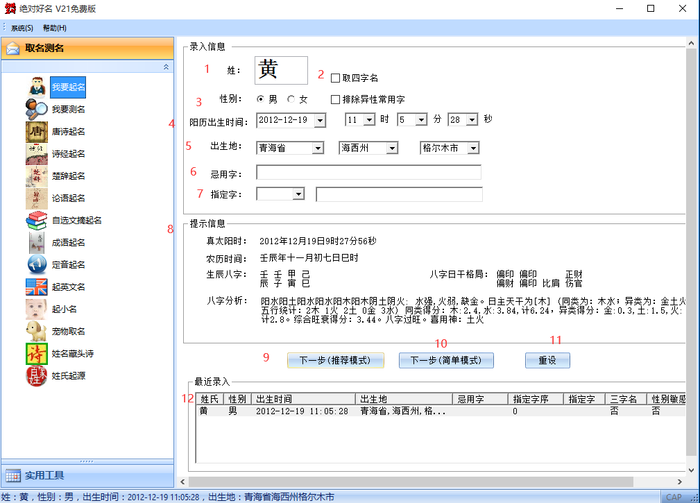 1)下一步(普通模式):进入起名下一步,普通模式可以自定义各种起名条件;