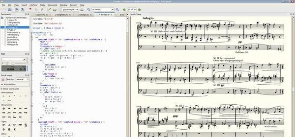 9、可配置的文档大纲视图,可轻松浏览大型LilyPond成绩