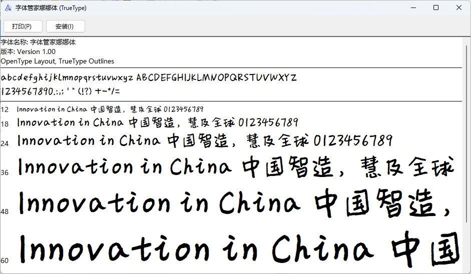 字体管家娜娜体是一款手写风格的卡通字体。这款字体微微倾斜,笔画不是很流畅,看起来感觉像是小朋友手写的感觉,因为笔画较为随意,深受人们喜爱。通常用作可以适用于名片设计、平面设计、广告设计、报纸杂志等领域方面的使用。
