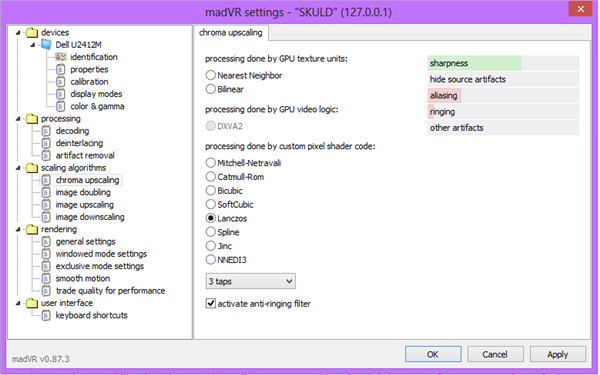 madvr是一种高品质的视频渲染器,能够完美兼容所有的媒体播放器使用,可将视频的画质大幅度的提升。在播放视频时,你可以获得更高的图像质量。madVR可与大多数播放器很好的配合使用,如:Media Player Classic - Home Cinema (MPC-HC), KMPlayer, J. River Media Center, Zoom Player和PotPlayer。若是在电脑上播放影片,使用madVR进行渲染的话,画面品质会随着显卡的性能有着显著的提高,而且想要运用madVR所有功能的话,你的显卡至少要等同或是高于660。