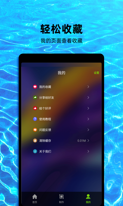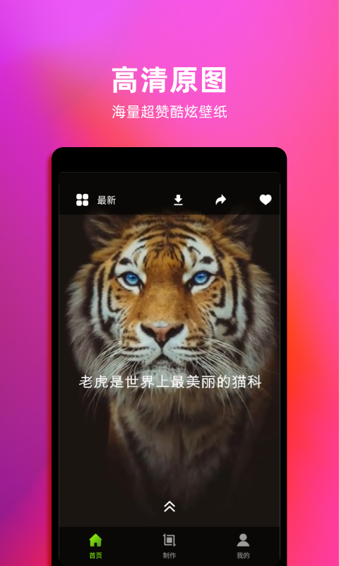 1、下载并安装软件,在首页可以获取软件内推送的壁纸使用; 2、你也可以在“制作”界面选择本地的照片进行制作壁纸;