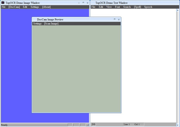 1、该程序的界面基于两个窗口,分别在其中使用图片和文本文件。打开新项目可以通过仅使用文件浏览器来完成,因为不支持拖放。2、至于去TopOCR提供的图像格式,支持BMP,JPG,GIF,PCX,TIF,不一而足。它只承认TXT和RTF文本文件扩展名的情况下。