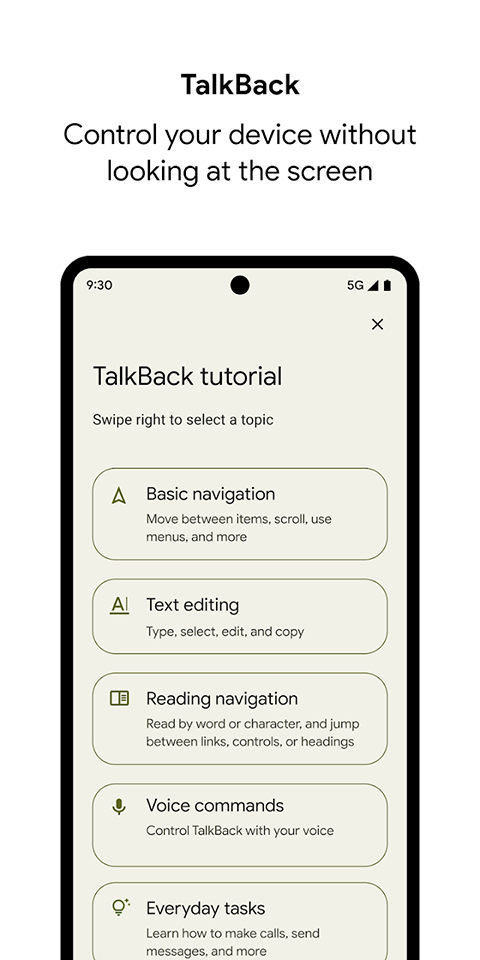 1、无障碍功能菜单:您可以使用这个大型屏幕菜单锁定手机、控制音量和亮度、抓取屏幕截图等等。 2、随选朗读:只需选择屏幕上的内容,系统就会大声把它们朗读出来。 3、开关控制:您可以使用一个或多个开关或使用键盘(而不是触摸屏)与 Android 设备进行互动。您还可以使用相机开关通过面部动作进行导航。 4、TalkBack 屏幕阅读器:获得语音反馈,使用手势控制您的设备,以及使用屏幕盲文键盘输入。软件亮点