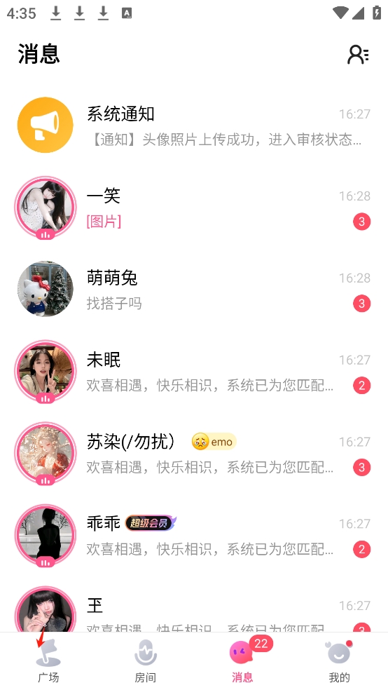 1、打开皮皮蟹软件,点击底部导航栏中的房间选项。