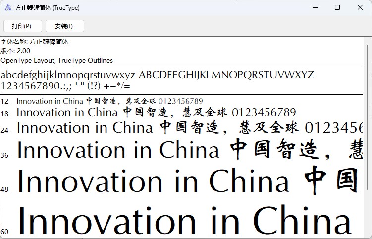 方正魏碑简体是一款非常好看的艺术字体。方正魏碑简体字形宽博、宏大,具有一种大气、庄重的感觉。结构内圆外方,呈现出一种方中带圆、圆中见方的形态,具有一种独特的审美价值。总的来说,方正魏碑简体是一种具有独特艺术魅力和审美价值的书法字体,被广泛应用于书刊、报纸、广告、标语、招牌等领域。