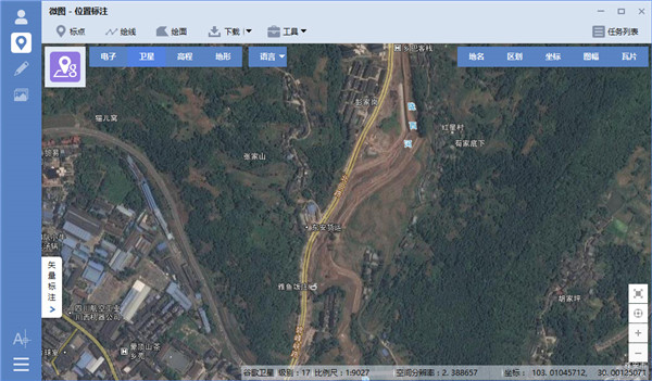 水经微图是一款专业的地图管理软件,软件集在线地图大图拼接,地图重投影,瓦片重切片以及地图标注,为广大用户提供专业的GIS绘制功能,照片管理以及数据云同步等功能,让你可以更加轻松的进行地图绘制管理。水经微图电脑版中的地图精度高,图像形象,与服务器连通,能够及时更新地图情况,还有专业的图拼接、地图重投影、瓦片重切片、地图标注、矢量下载、矢量叠加、CAD制图、专业GIS绘制、照片管理和数据云同步等功能。内有专业GlS地图绘制、照片管理、CAD制图、云同步矢量数据、云同步照片、高清卫星影像下载等功能,可为用户提供高精度的地图,还支持图像数据裁剪和背景透明度,支持高程数据裁剪和背景透明度等。