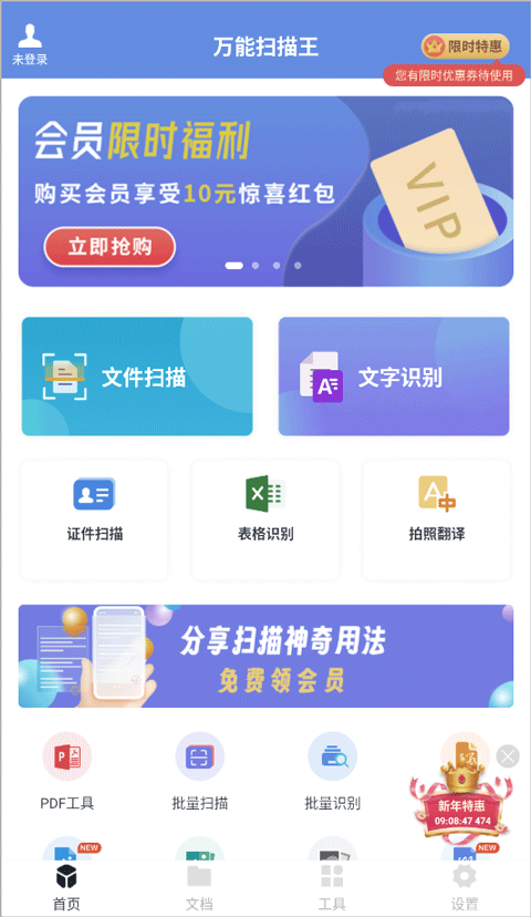 万能扫描王是一款非常好用的手机扫描软件,支持批量批量扫描和批量文字识别,支持历史文件轻松管理及分享导出,除此之外,它能够帮助用户将您扫描的文档、Excel表格、身份证、护照、书本、报纸、名片、PDF、手稿、图片通过OCR文字识别技术自动识别、提取图片文字、解析信息。万能扫描王手机版功能