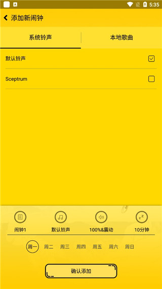 4、然后调节你的音量大小和响铃的时间间隔,点击确认添加即可;