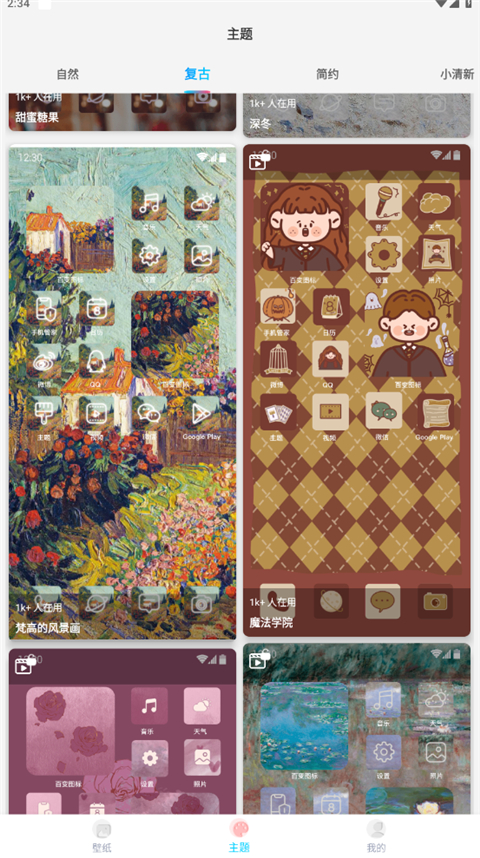 1、进入APP选择你喜欢的主题或壁纸,左上角显示广告就需要观看广告后即可使用。