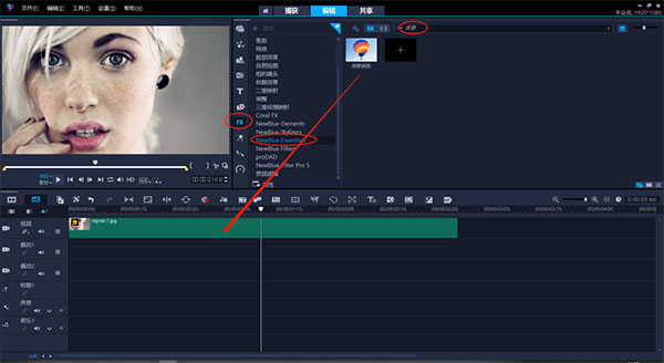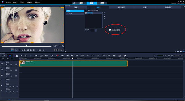 2,双击素材打开效果面板,点击自定义滤镜