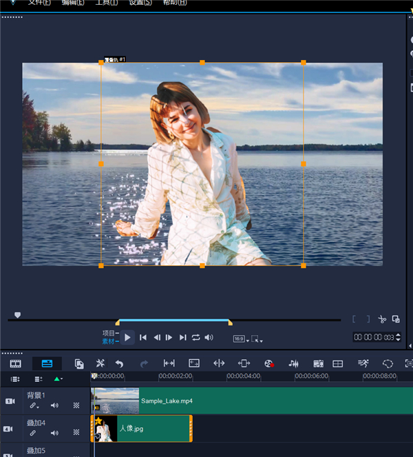 1、首先我们将视频素材拖入时间轴中,要注意的是要抠像的视频放在背景视频的下方;