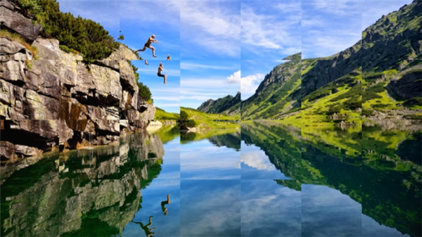 全新的视差转场提供多种运镜速度不一的图层,让前景与背景的移动速度有所落差,创造仿佛3D般的迷人特效。全新的瞬间变色和分割转场效果可让您的影片更具现代美感,并强化影片所要传达的整体印象。