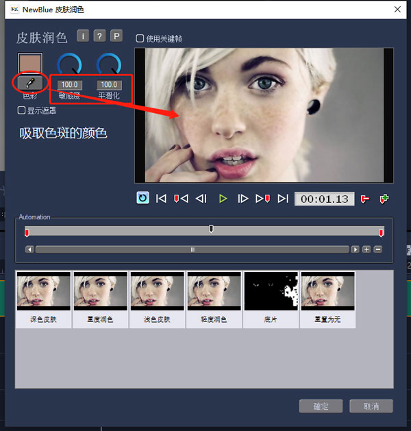 3、用吸色笔选取色斑或皮肤的颜色,调整灵敏度和平滑,尽可能的保证不会影响到其他地方