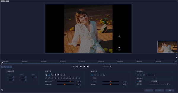 3、打开遮罩创建器后,默认打开的就是画笔模式,你只需要用画笔将需要扣下来的部分全部涂上就可以了。在完成涂抹后,点击右下角的确定,抠图就完成了;