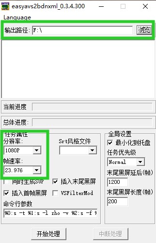 easyavs2bdnxml 原本是命令行工具,但是有大佬做成了 GUI,使用 UI 操作的话就很方便了。使用 easyavs2bdnxml需要提前安装Avisynth,否则软件无法运行,另外 easyavs2bdnxml 是一个比较脆弱的软件,建议放在 C 盘运行,防止出意外,而且输入和输出路径不要带有中文,这都有可能导致软件崩溃。打开软件,先设置输出路径和任务属性,如果已经拖入字幕再改属性的话就不生效了。