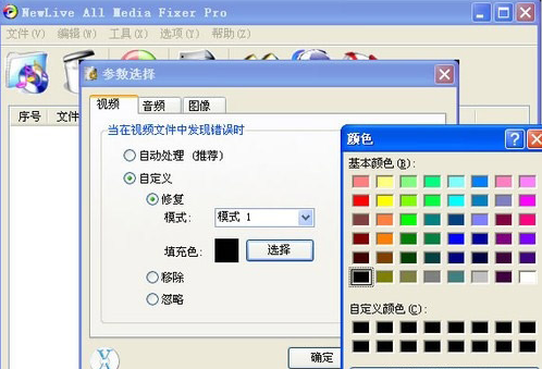 3、任何的修复文件都不可能重现缺损的原始数据,而是通过修复文件头以及在缺损位置填充空白数据等方法来补缺,所以修复后的文件,可能会出现一些“马赛克”现象,而这里可以定义填充“马赛克”的颜色,建议根据视频和图片的主基色选择,会有较好的修复效果,如下图所示: