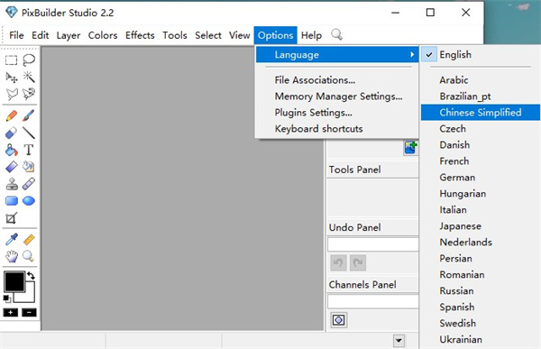 进入软件,通过【Options】—【Language】,将语言调整为Chinese Simplified(简体中文)即可