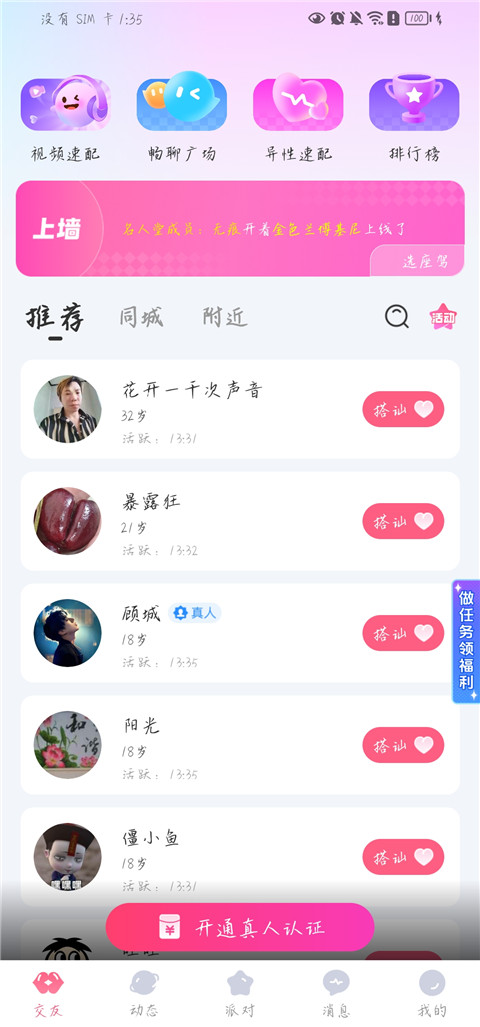 【语音派对】 不看长相只听声音,语音聊天为爱转身。通过声音你可以判断对方是否有趣,幽默或者涵养,用声音做跟你陪聊天的好伙伴。 【视频聊天】 通过推荐、同城、附近、新人等分类,为你展示不同的用户,你可以浏览用户列表,喜欢谁直接撩。推荐,为你展示社交达人,与她们聊天,提高聊天能力。 同城,展示与你同城的人,同城交友更方便。附近,尽可能为你展示你附近的人,满足你的附近聊天交友需求。新人,展示新萌妹萌新用户,体验羞涩的对聊感觉。 【陌生人速配】 你可以通过视频速配,开启闪聊体验。通过聊天速配开启。陌生人聊天,也可以闪爱哦! 陌生人速配,让爱和聊天都可以闪速升温。 【详尽资料】 你可以查看对方的主页资料,包括动态,生活照,兴趣爱好等。喜欢的话,可以在线处CP。更新日志