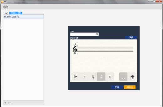 3.点击自定义、定制,点击“+”,在右侧输入自定义的音阶,如果输错了,也别慌,点击橡皮擦工具即可,最后保存