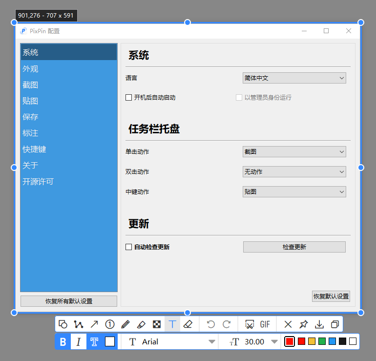1、在截图编辑的主要界面,你会发现它拥有很浓厚的Snipaste风味,其实PixPin的操作逻辑也是和Snipaste差不多的。