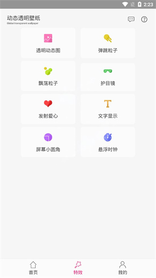 1、【壁纸库功能】 APP的壁纸库中为用户收纳了海量精美的动态壁纸 2、【壁纸调整功能】 支持用户对需要使用的壁纸经自由调整操作 3、【相册功能】 可以让用户将相册中喜欢的照片是在为动态壁纸 4、【透明度设置功能】 支持用户手动生物钟壁纸的透明度 5、【下载功能】 可以让用户将壁纸库中的精美壁纸下载储存在本地文件夹中 6、【收藏功能】 能够让用户对超级喜欢的壁纸进行一键收藏功能介绍