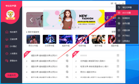 1、软件右上角设置内点开ASIO设置;