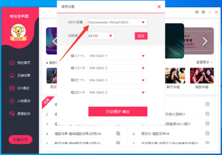 2、点开后选择,Voicemeeter Virtual ASIO 点击已设置好确定;